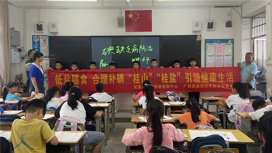 6月4日上午,为连续宣传“品质桂山,定心桂盐”的效劳理念,来宾分公司走进武宣县桐岭镇中心学校,开展了“低盐膳食,合理补碘,‘桂山’‘桂盐’引领健康生活”进校园运动。本次围绕宁静用盐知识以及如何科学减盐,为学生开展健康讲座。