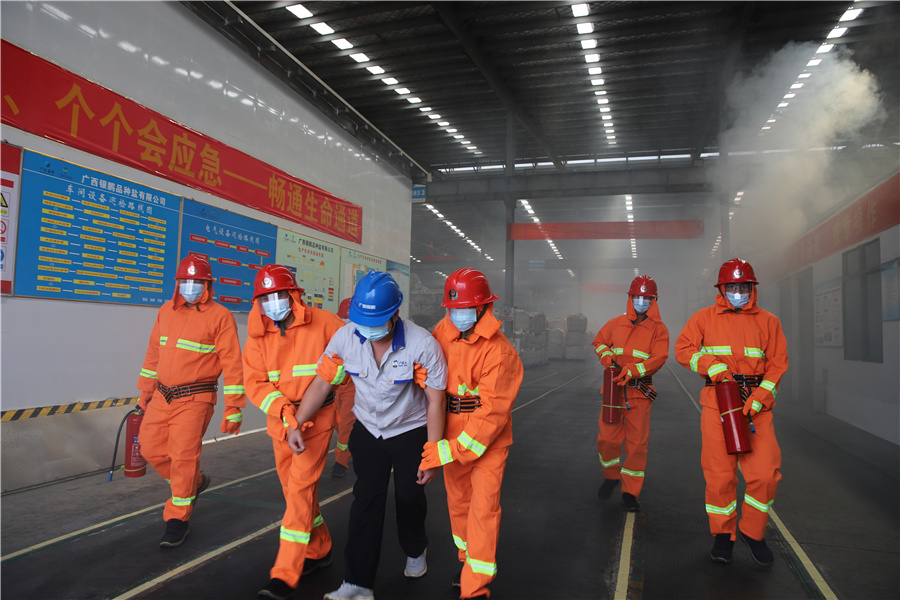 宁静无小事,责任重于泰山,为增强公司员工的消防宁静意识以及在火灾爆发时应急疏散、宁静逃生的能力,让全体员工熟练掌握火灾报警、灭火技术、疏散逃生、应抢救援及种种灭火器材的接纳和处理火灾步伐,从基础上锤炼员工的实际灭火作战能力。6月27日,银鹏公司联合钦州港区消防大队组织开展以“人人讲宁静,个个会应急,流通生命通道”为主题的消防知识培训及消防应急演练运动。