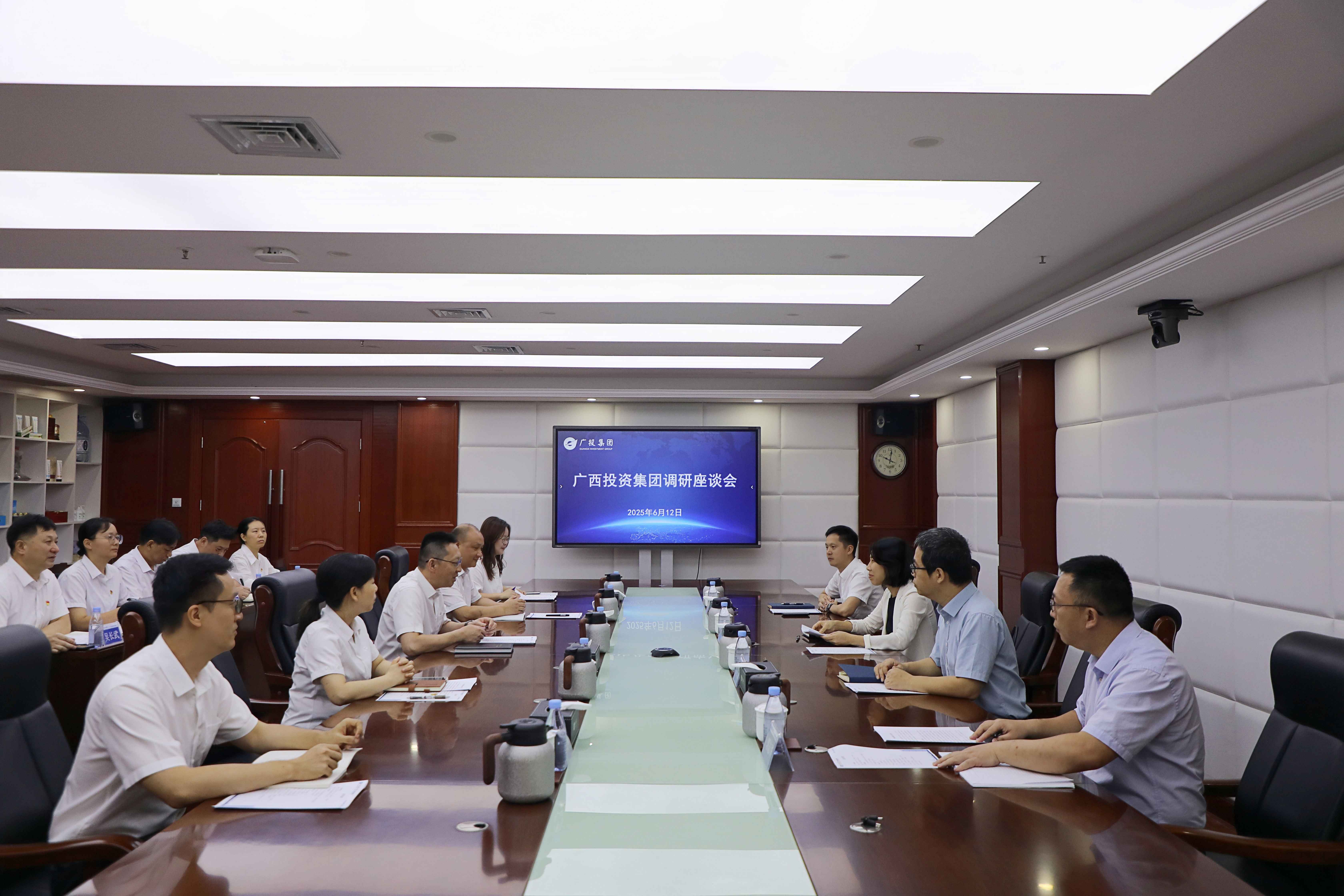 6月12日上午,广投集团副总经理彭湖一行到广西z6com人生就是博集团指导深入贯彻中央八项划定精神学习教育并开展调研座谈事情。